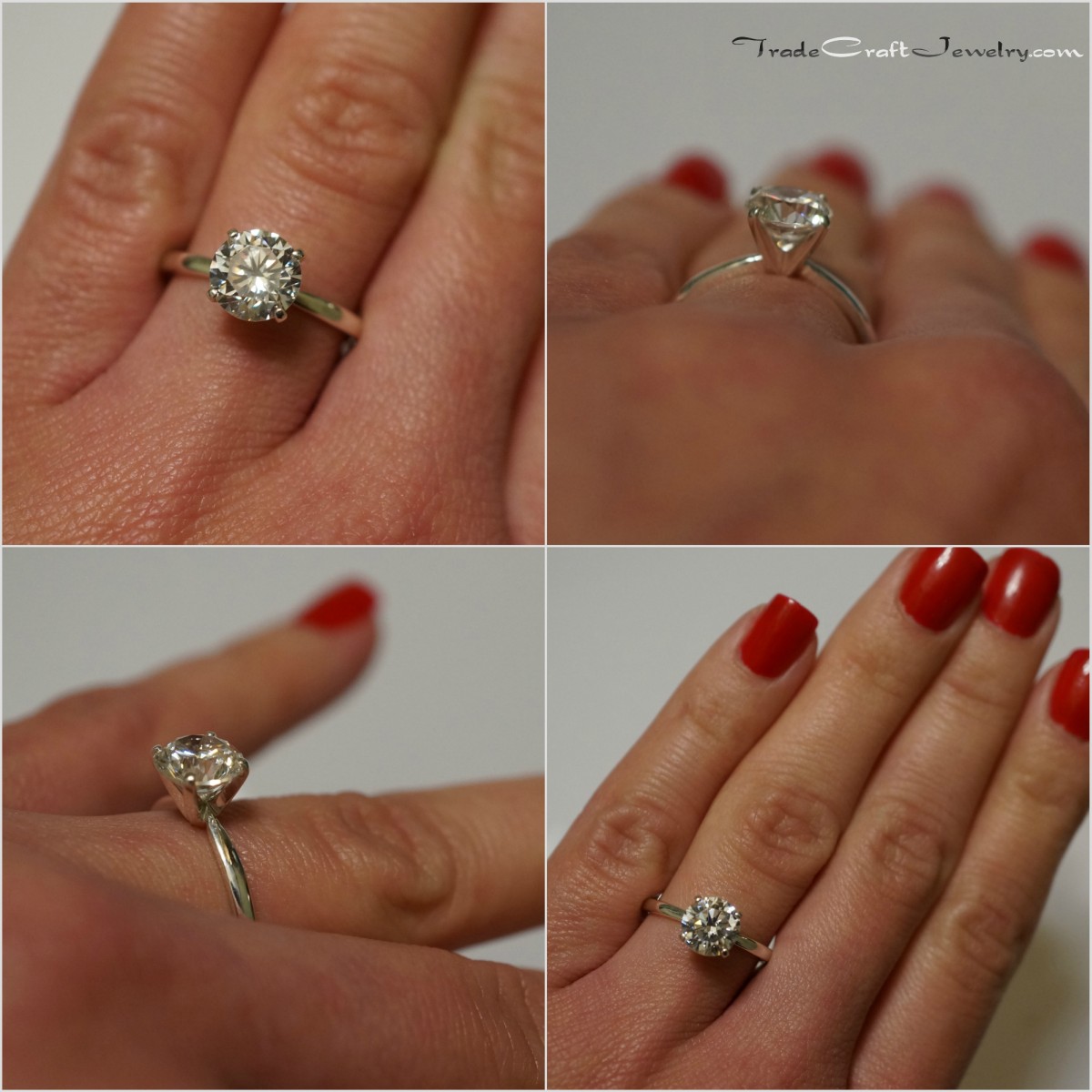 7.5mm/1.67 Carat Yellow Tint 8 Hearts & Arrows in 925 sterling silver 4 prong solitaire ring - tradecraftjewelry.com/YellowTintRound