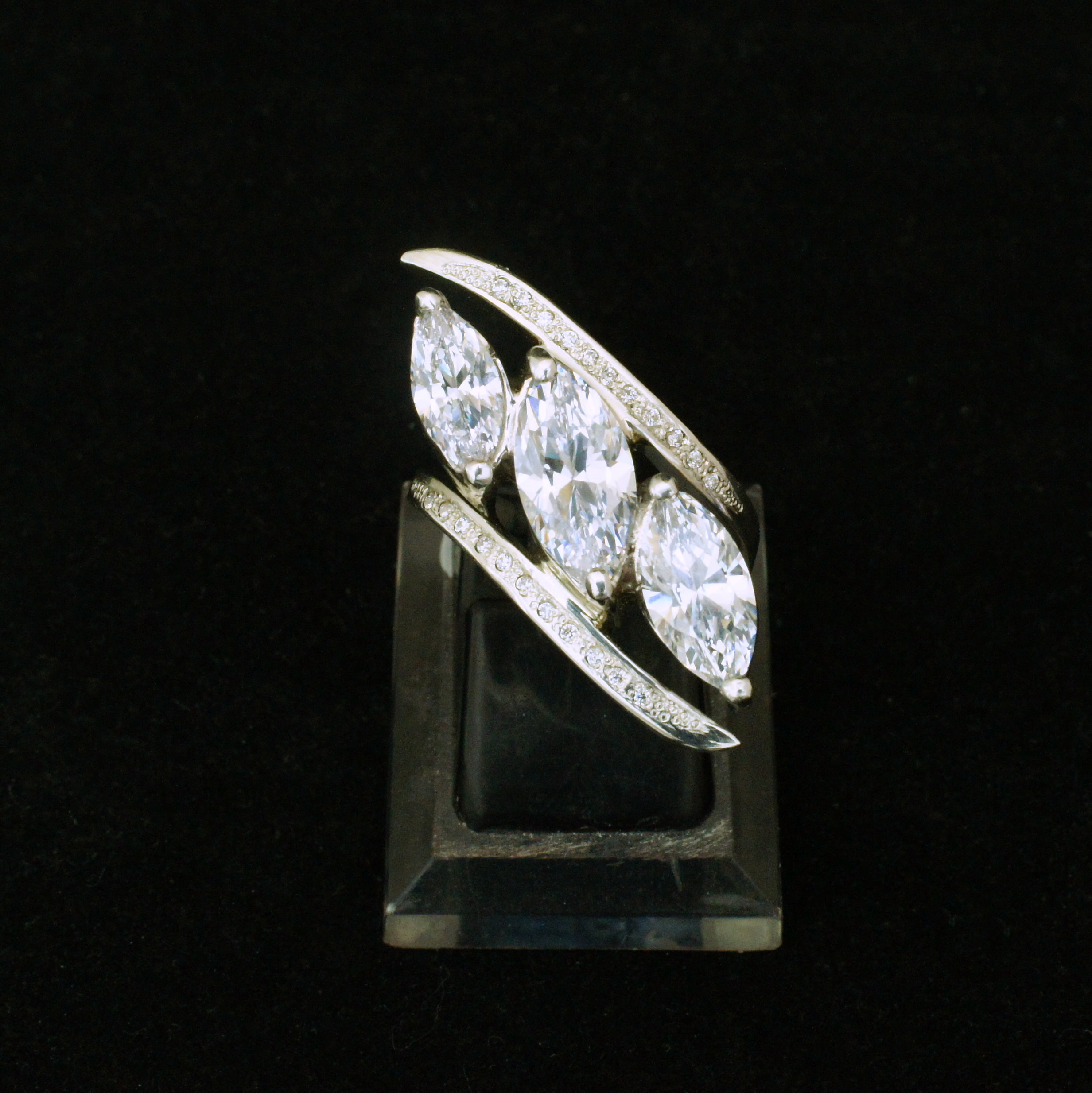 Triple Marquise silver ring with 13x6.5mm 12x6mm 10x5mm paved with 1mm round stones