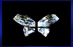 A butterfly cut Cubic Zirconia, cut from AAAAA Diamond Cubic Zirconia. This butterfly cut gemstone is made from four separate gems arranged together. The wingspan of the butterfly is roughly 28mm, these gems could be set into brooch or pendant and they can also be used with PMC (precious metal clay) to make a butterfly pendant where the gemstone is the whole wing.